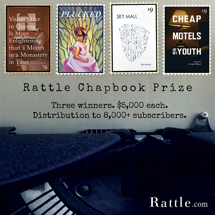 And maybe the best part is this: The $30 entry fee is just a standard subscription to Rattle, which includes four issues of the magazine and three winning chapbooks, even if one of them isn't yours. Rattle is one of the most-read literary journals in the world—find out why just by entering! For more information, visit our website.